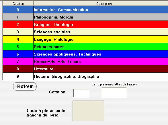 Bilio.Net utilise, en plus de la classification internationale, une Classification Dewey adaptée à une utilisation à l'école primaire.