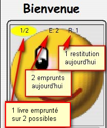 -BiblioWeb => possibilité d'ajouter l'icone de votre établissement -BiblioNet : - Amélioration de la recherche par titre pour les livres ne disposant pas de code-barres sur la page d'amazon. - Amélioration de l'interface, le point rouge indiquant que l'élève a un emprunt en cours évolue! Maintenant le point est vert, orange ou rouge en fonction du nombre restant de livres empruntables. Le point de couleur contient également le nombre d'albums empruntés. Deux informations supplémentaires viennent s'ajouter au point de couleur: le nombre d'ouvrages empruntés et réstitués sur la journée en cours. ![]() -Petit rappel, l'utilisation du coffre fort numérique nécessite une version récente (1.09o minimum). |