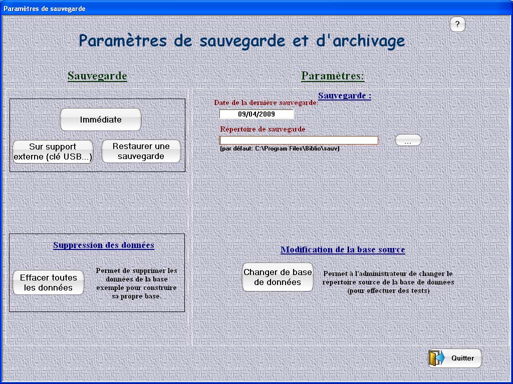 *Il est cependant possible de faire la saisie sur un autre poste et d'importer les fichiers sur un poste non connecté par la suite de façon très simple grâce à un systeme de sauvegarde sur clé USB. Il suffit de restaurer cette sauvegarde sur le nouveau poste.