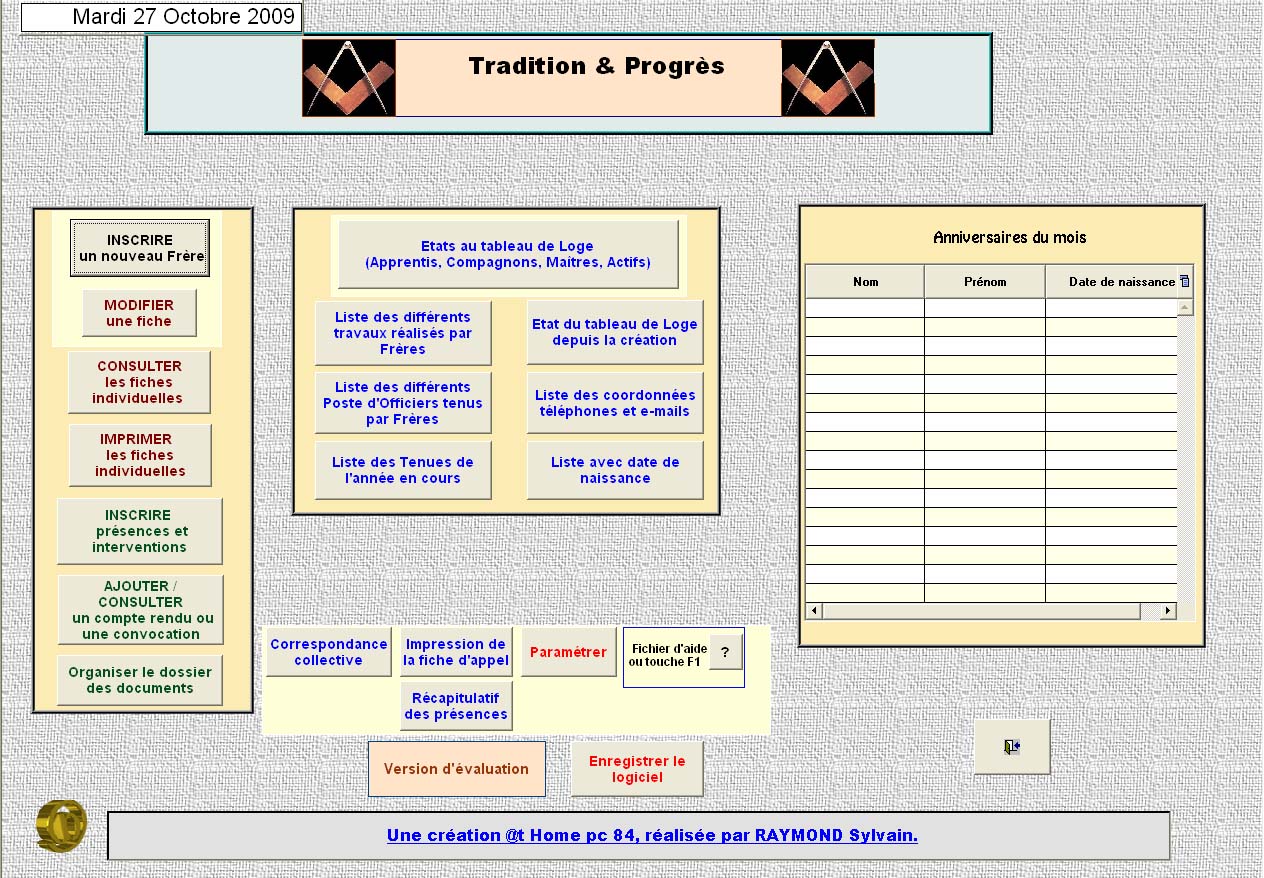 3) d’éditer et d’imprimer des états multiples : (liste des Apprentis, des Compagnons, des Maîtres, de tous les actifs à ce jour, de tous les Frères depuis la création…) et ce dans une présentation particulièrement soignée